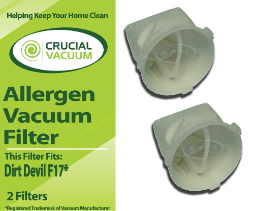 High Quality Replacement 2-Pack Filter Fits Dirt Devil KONE and KURV Hand Held Vacuum Cleaners. Compare to Dirt Devil F17 Part # 3DN0980000, 3-DN0980-000. It is highly recommend to everyone to replace your filter every 3 to 6 months. Engineered & Designed By Crucial Vacuum. Absolutely Essential For All Allergy Sufferers!Instructions For Changing Your Filter:1. First Remove the dirt canister from your Dirt Devil Hand Held Vacuum.2. Remove the cone by pulling straight down.3. Turn the filter latch 1 quarter of a turn to remove the filter.4. Throw away old filter and replace with new filter and secure the latchThis is a generic product designed and engineered in the United States by Crucial Vacuum. This is not a Dirt Devil® OEM product and is not covered under any Dirt Devil® manufacturer's warranty. The Dirt Devil® brand names and logos are the registered trademarks of their respective owners. Any use of the Dirt Devil® brand name or model designation for this product is made solely for purposes of demonstrating compatibility.stainless steel lunch container infrashine flat iron global chefs knives